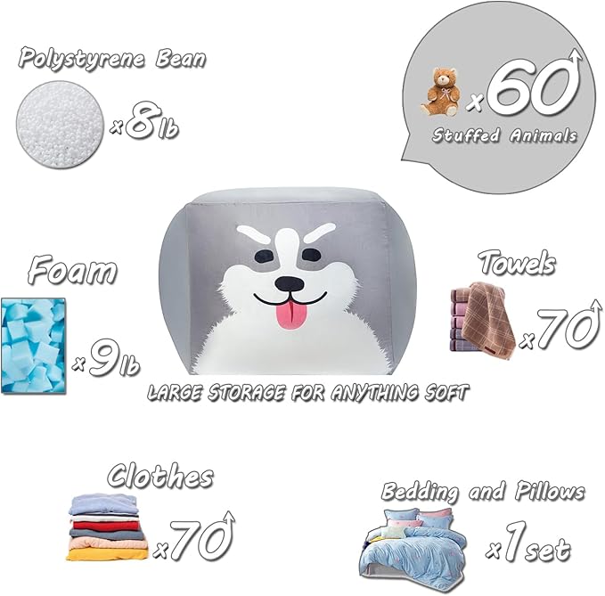 Anzitinlan Bean Bag Chair for Toddler Bedroom, Stuffed Animal Storage, Kids Toy Storage Organizer, Extra Large Size, Velvet Super Soft Cover Only