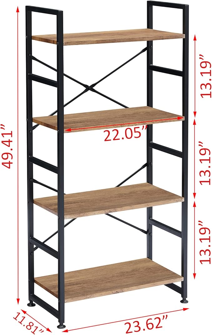 Industrial 4 Tier Bookshelf, Wood Etagere Bookshelves and Bookcase with Metal Frame, Rustic Standing Unit Shelf Display Rack for Living Room/Home Office, Vintage Brown