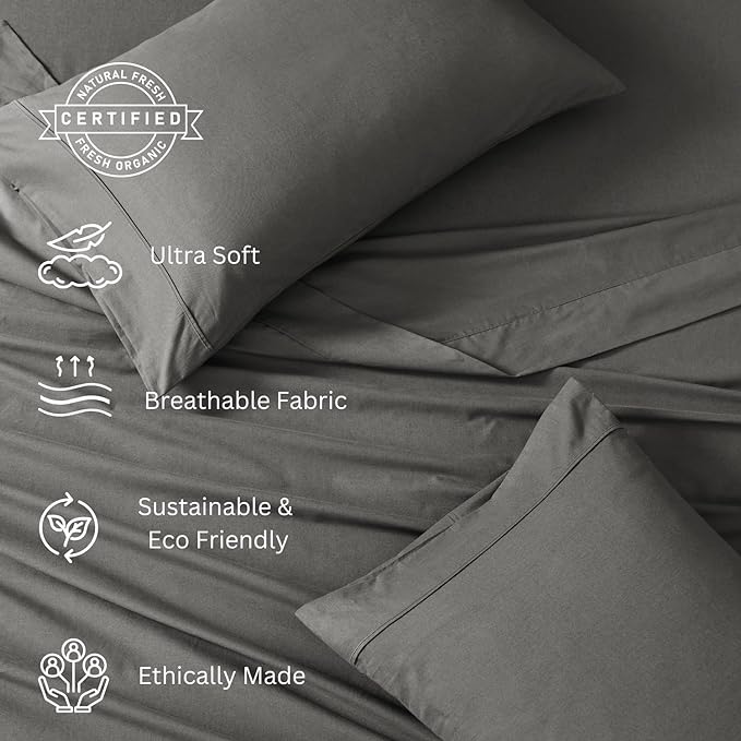 About This Pure Organic Comfort: Experience the luxurious comfort of our Lane Linen charcoal grey sheets king size, meticulously crafted...