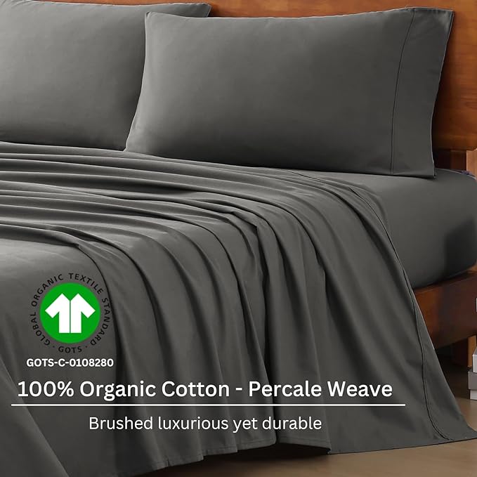 LANE LINEN 100% Organic Cotton Sheets King Size - 4Pc King Sheet Set, Soft Sheets for King Size Sheets, Percale Weave, Hotel Luxury Bed Sheets, 15" King Sheets Deep Pocket, Oeko Tex Sheets - Charcoal