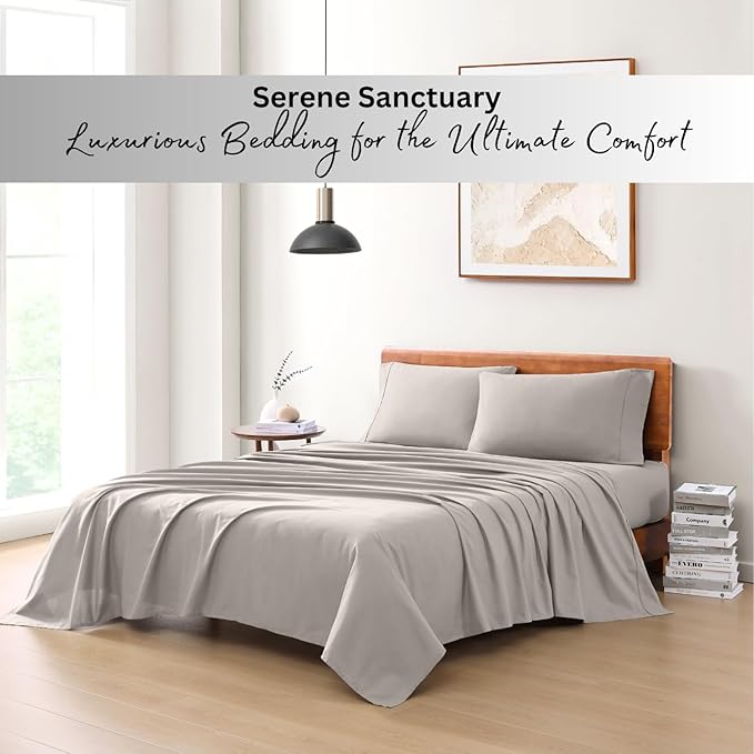 LANE LINEN 100% Organic Cotton Twin XL Sheets Set 3-Piece Pure Percale Extra Long Soft Bedding Breathable Fits Mattress Upto 15" Deep - Silver