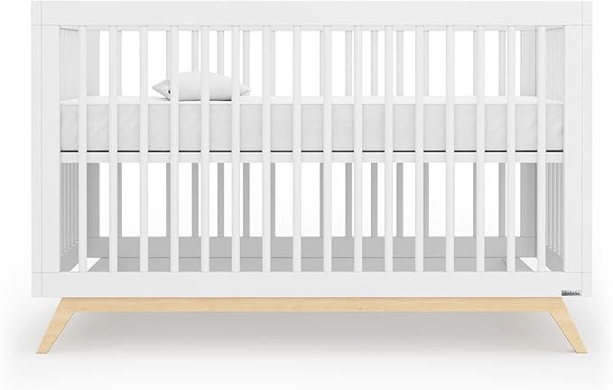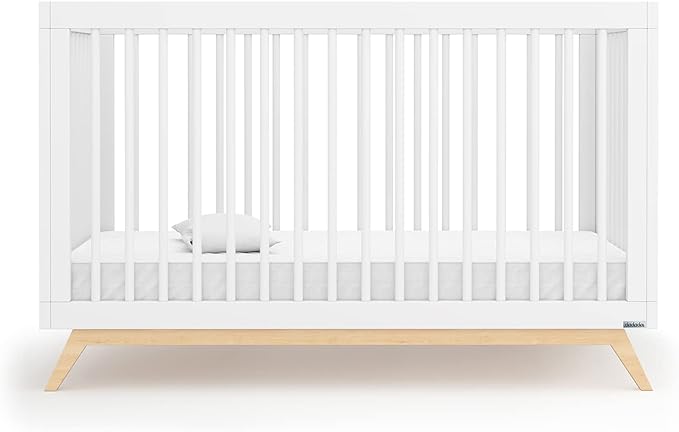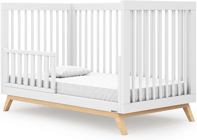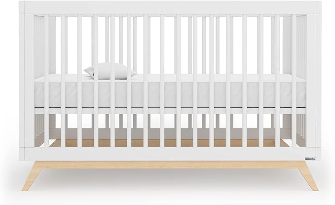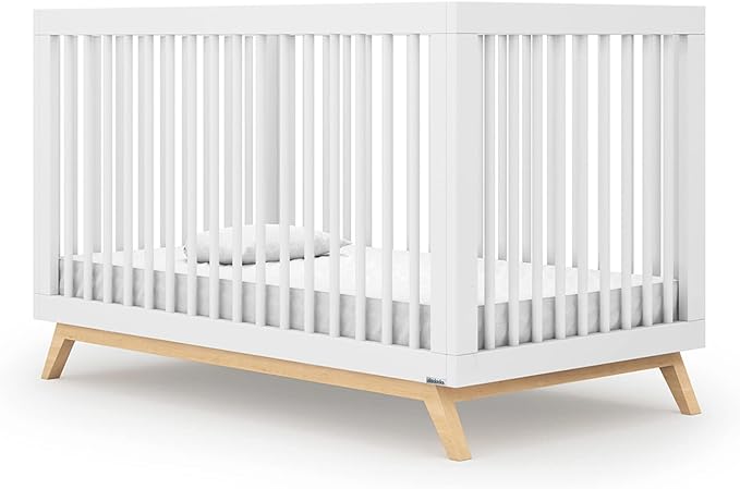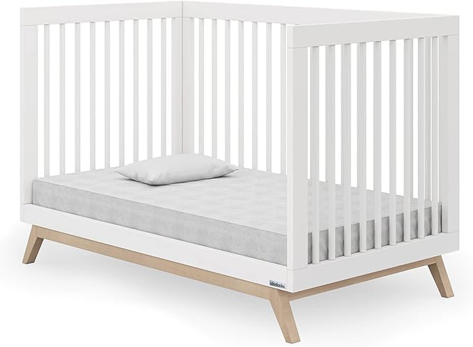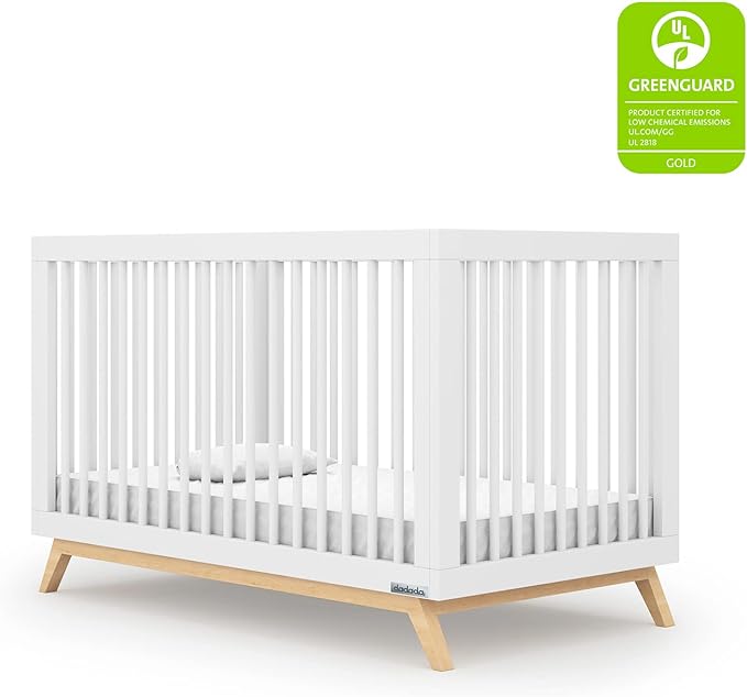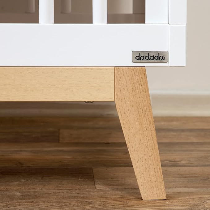 dadada Baby Soho 3-in-1 Convertible Crib – Made in Italy, GREENGUARD Gold, Adjustable Mattress Height, Solid Beechwood – Baby-Safe Finish, Modern Design 53.15 x 29.95 x 36.7 in (White + Natural)