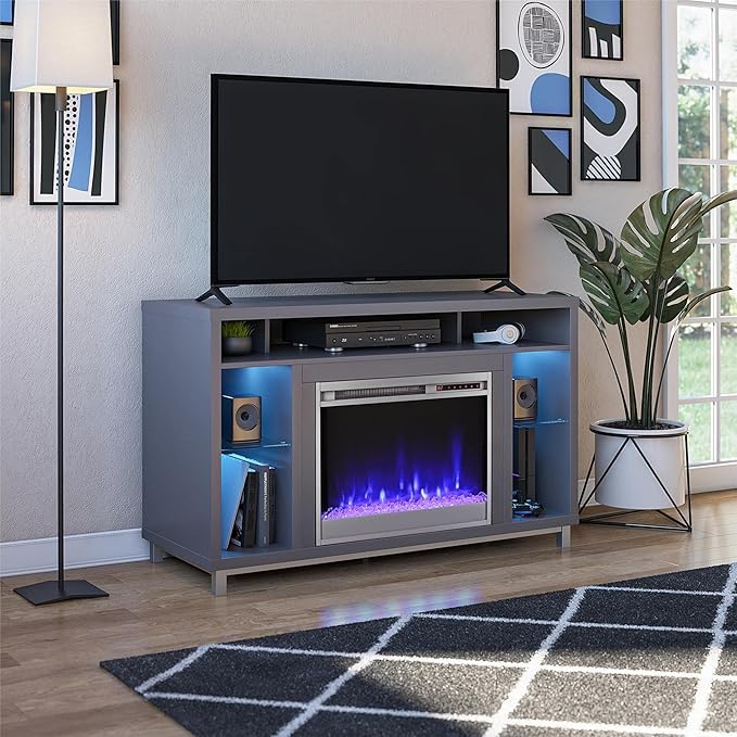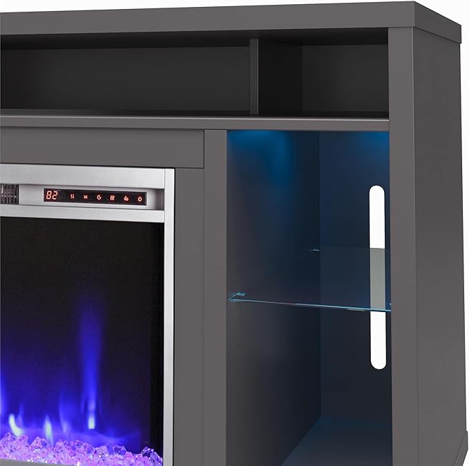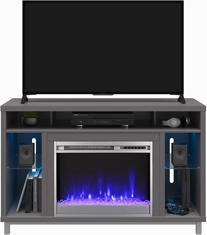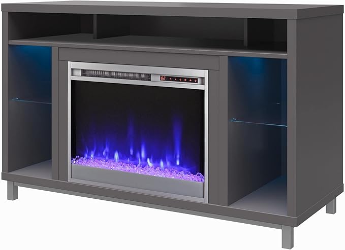 Ameriwood Home Lumina Fireplace TV Stand for TVs up to 48 Inch, Replaceable Electric Fireplace Insert Heater, Remote Control, Timer, Color Changing LED Lights, Crystal Ember Flames, Graphite Gray