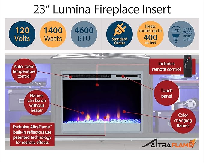 About This The Ameriwood Home Lumina Fireplace TV Stand includes a 23" wide fireplace insert and can hold flat paneled...