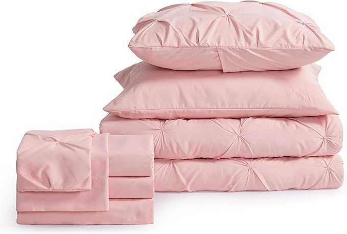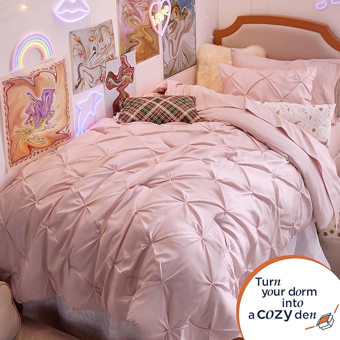 Bedsure Pink Twin Comforter Set for Girls - 5 Pieces Twin Bedding Sets, Pinch Pleat Pink Twin Bed in a Bag with Comforter, Sheets, Pillowcase & Sham