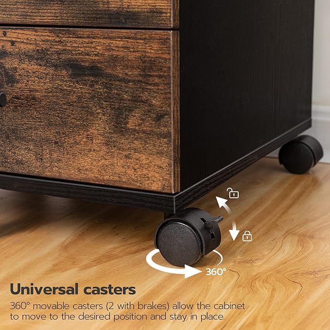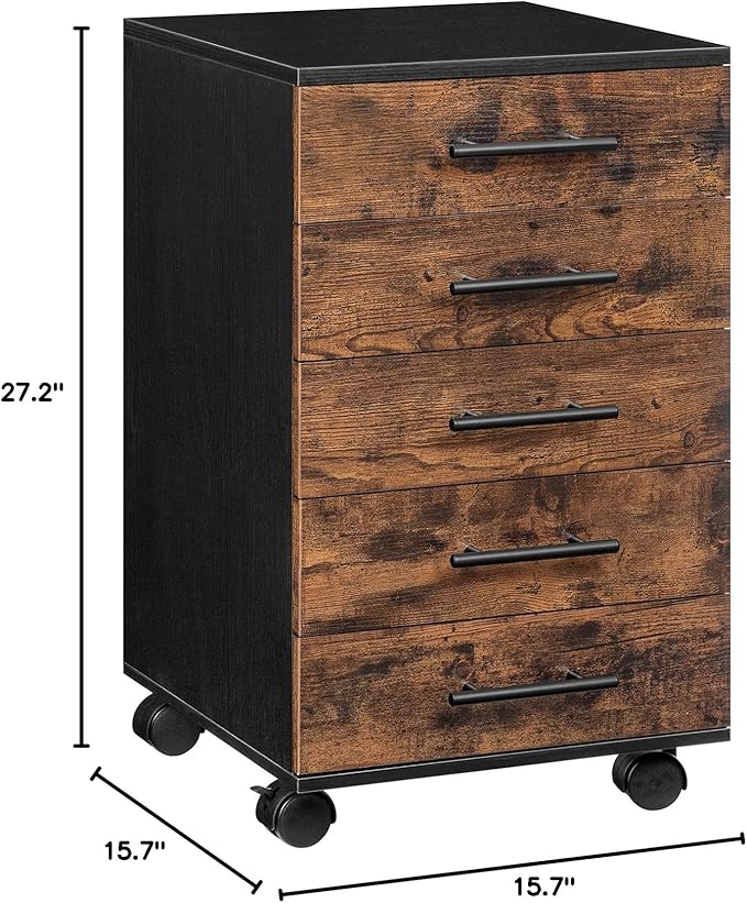 HOOBRO 5-Drawer Chest, File Cabinet, Office Cabinet, Filing Cabinet with Drawers, Wooden Cabinet with Wheels, Storage Cabinet for Makeup, for Home Office, Study, Easy Assembly, Rustic Brown BF05WJ01