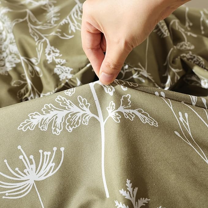 JANZAA Queen Olive Green ,3 PCS Bedding Floral Plant Flowers Printed on Green Comforter Set