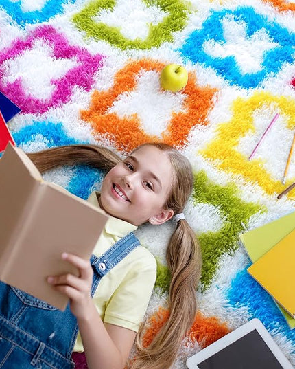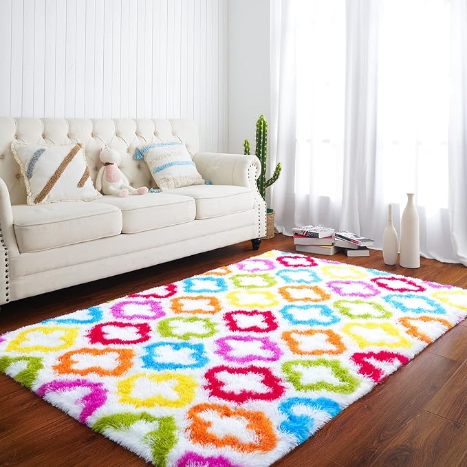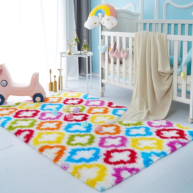 Tepook Fluffy Colorful Rug for Kids, Shaggy Soft Rainbow Area Rugs for Girls Bedroom, Indoor Modern Geometric Moroccan Rugs Plush Girls Kids Rug for Playroom Teens Room Nursery Home Decor, 4 X 6 ft