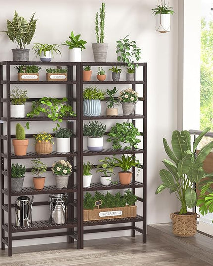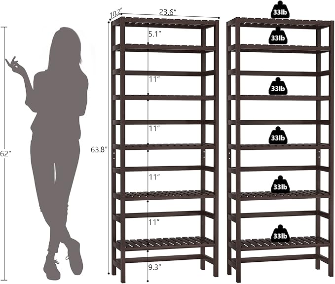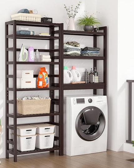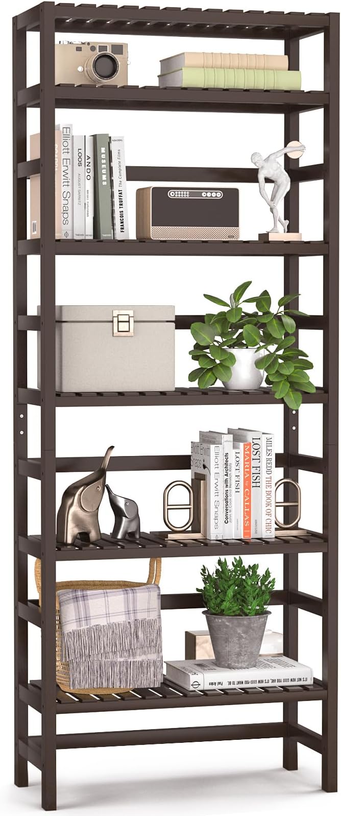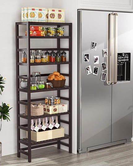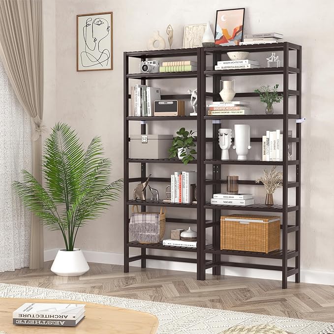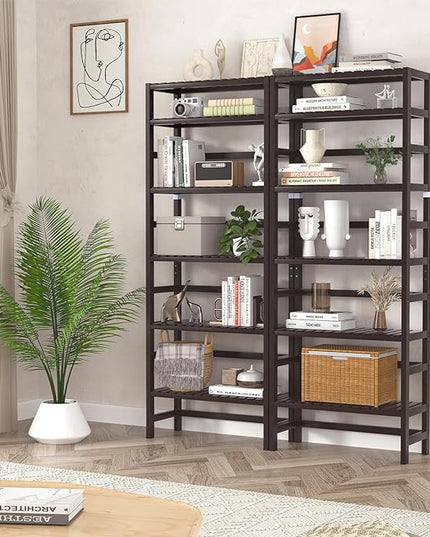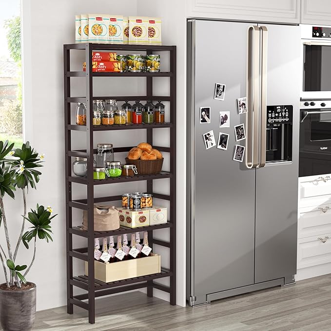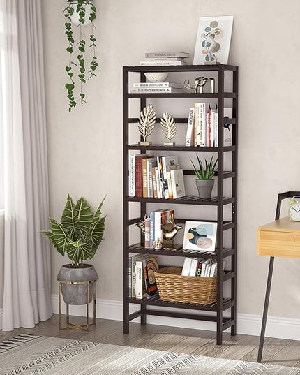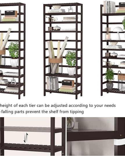 Homykic Bamboo Bookshelf, 6-Tier Adjustable 63.4” Tall Bookcase Book Shelf Organizer Free Standing Storage Shelving Unit for Living Room, Bathroom, Kitchen, Bedroom, Rust Resistance, Espresso