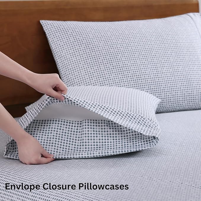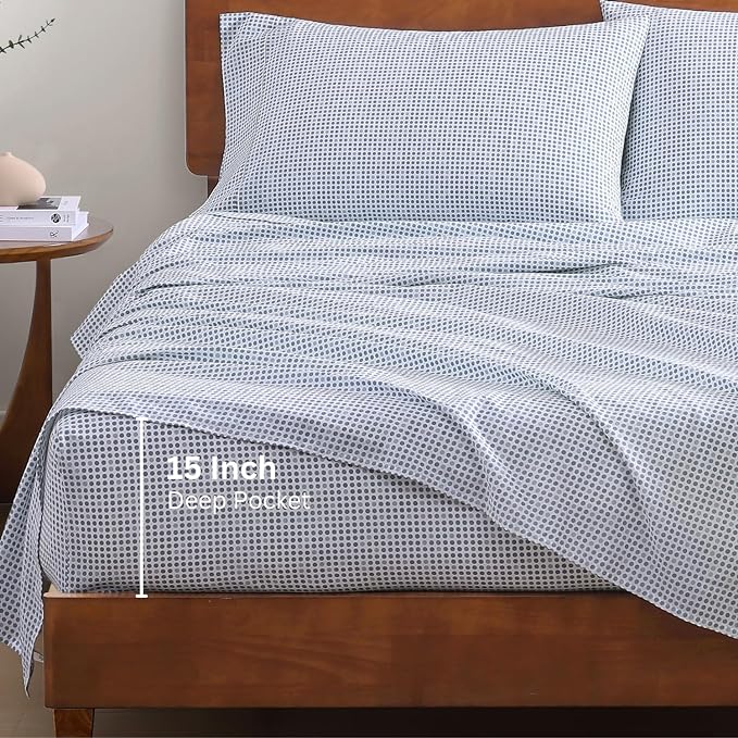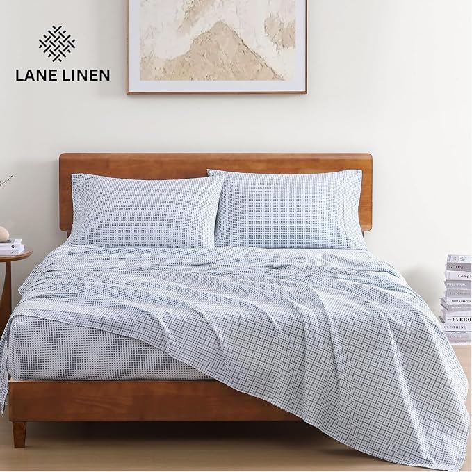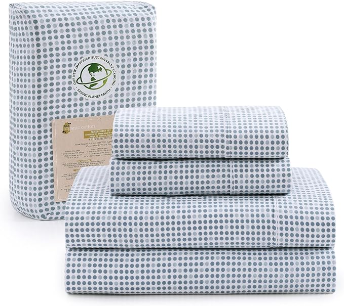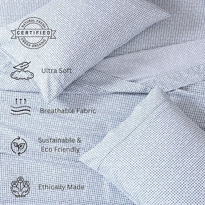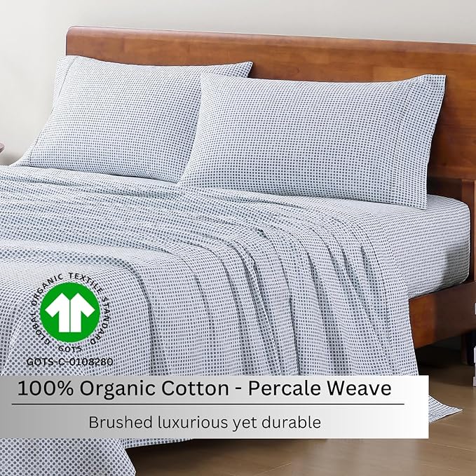 LANE LINEN 100% Organic Cotton Twin XL Sheets Set 3-Piece Pure Percale Bedsheets Soft Bedding Breathable Fits Mattress Upto 15" Deep - Polka Dot