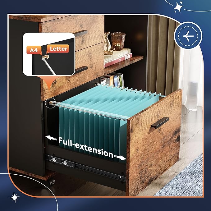 About This MULTIFUNCTIONAL & STYLISH: This filing cabinet with open storage spaces, file drawers and storage cabinet is designed to...