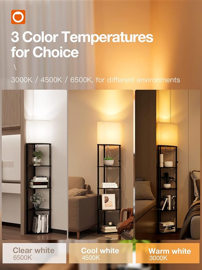 About This 3CCT LED Bulb: The sector shelf floor lamp has 3 color temperatures - 3000K/4500K/6500K (Warm white/Cool white/Clear white),...