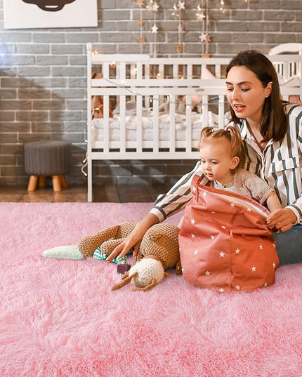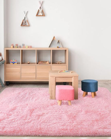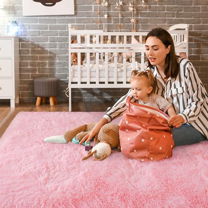 Super Soft Fluffy Shaggy Rugs 4x5.9 Feet for Living Room Bedroom, Fuzzy Plush Area Rugs for Girls Kids Room Nursery Home Decor, Furry Dorm Rug Cute Non-Slip Indoor Floor Carpet, Baby Pink