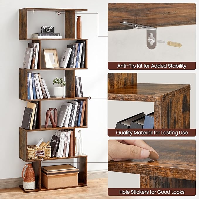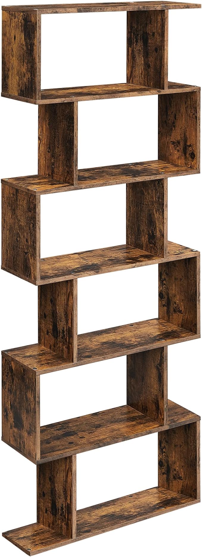 VASAGLE Bookshelf, 6-Tier Bookcase, Tall Display Shelf, Freestanding Storage Shelf, Room Divider, for Home Office, Living Room, Bedroom, Study, Rustic Brown ULBC61BX