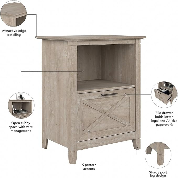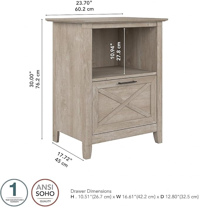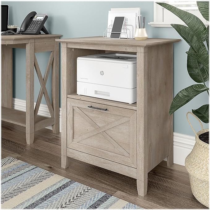 Bush Furniture Key West 1-Drawer Lateral File Cabinet, Letter/Legal, Washed Gray, 24-inch (KWF124WG-03)