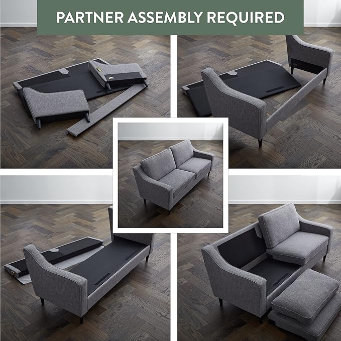 Edenbrook Jensen Upholstered Couch - Couches for Living Room - Charcoal Upholstered Couch - Living Room Furniture - Small Couch - Seats Three - Scoop Arm Modern Couch