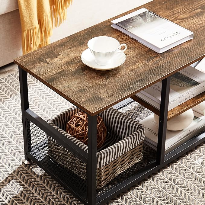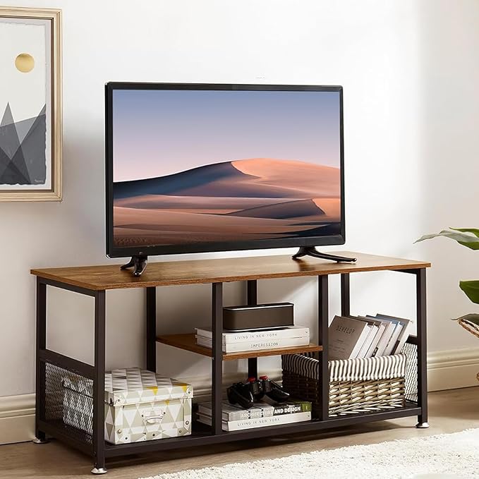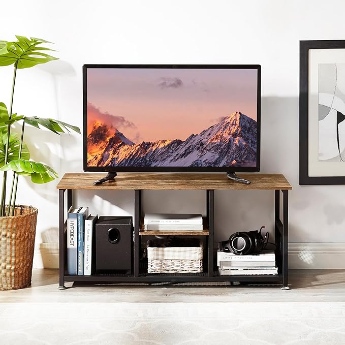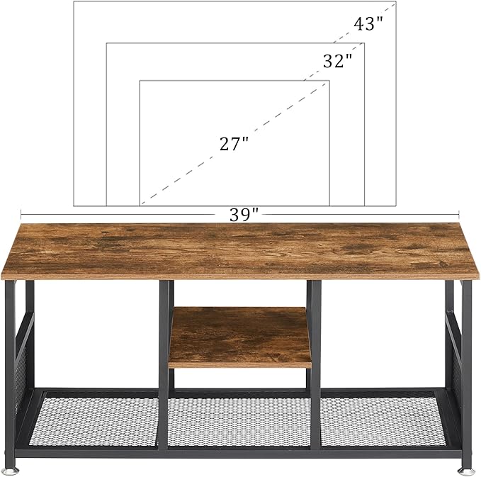 VECELO Industrial 39" TV Stand,3-Tier Console Table, Media Entertainment Center for 47 Inches Television, for Living Room Bedroom, Rustic Brown