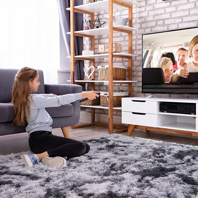 YOBATH Fluffy 6x9 Area Rugs for Living Room Bedroom, Plush Anti-Slip Shaggy Shag Rugs for Kids Girls Boys, Fuzzy Rugs Capet for Nursery Playroom Classroom Dorm Room Decor, Tie-Dyed Dark Grey