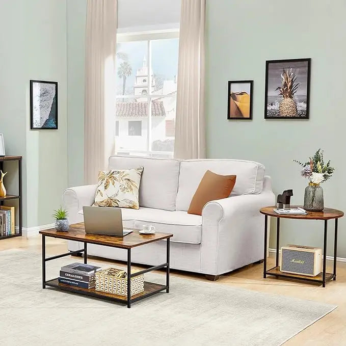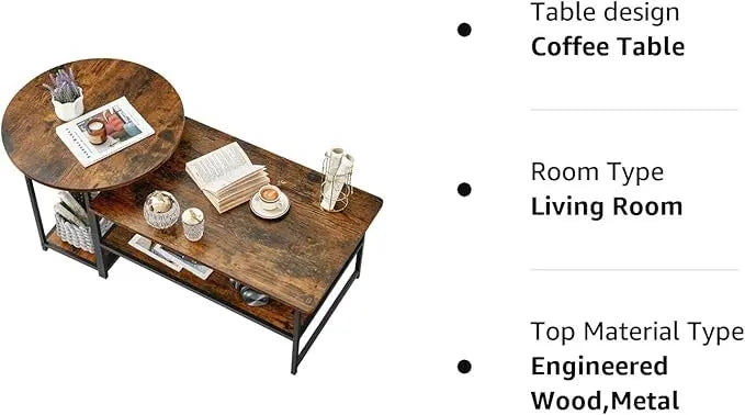 WOHOMO Coffee Table, Mid Century Modern Coffee Table for Living Room Rustic Farmhouse Center Table 2 in 1Detachable Table Set, Rustic Brown