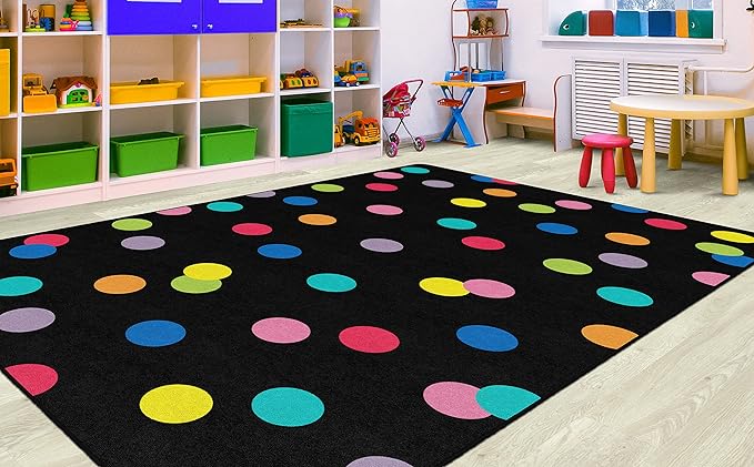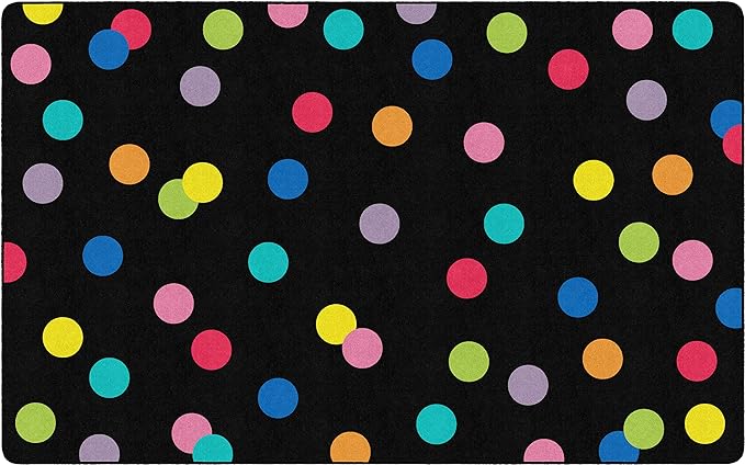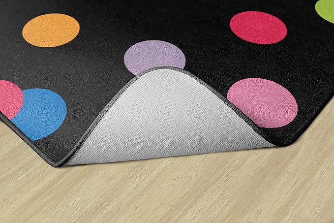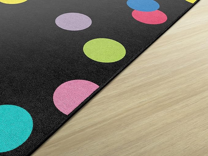 Flagship Carpets Schoolgirl Style Just Teach Rainbow Polka Dots Classroom Area Rug for Indoor Classroom Learning or Kid Bedroom Educational Play Mat, 7'6" x 12', Multi