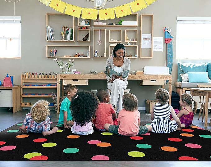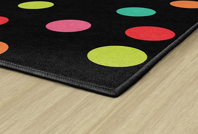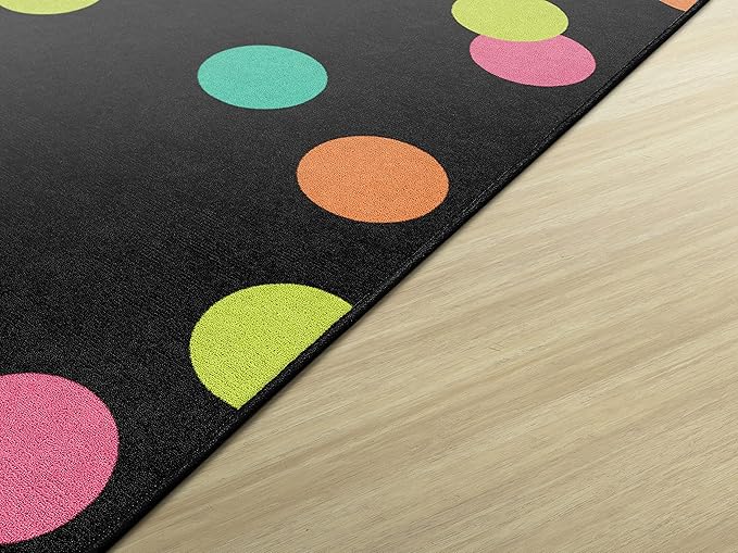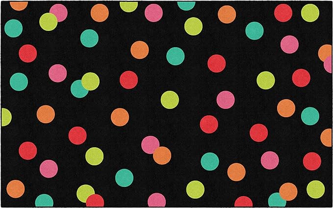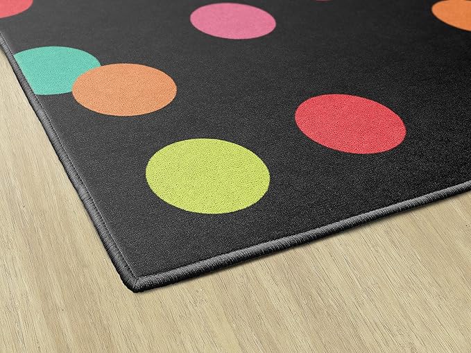 Flagship Carpets Schoolgirl Style Black White and Stylish Brights Polka Dots Classroom Area Rug for Indoor Classroom Learning or Kid Bedroom Educational Play Mat, 7'6"x12'