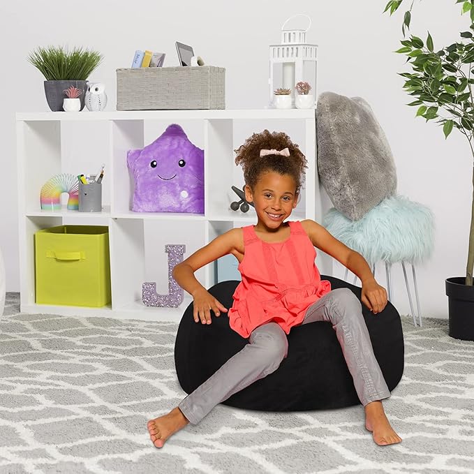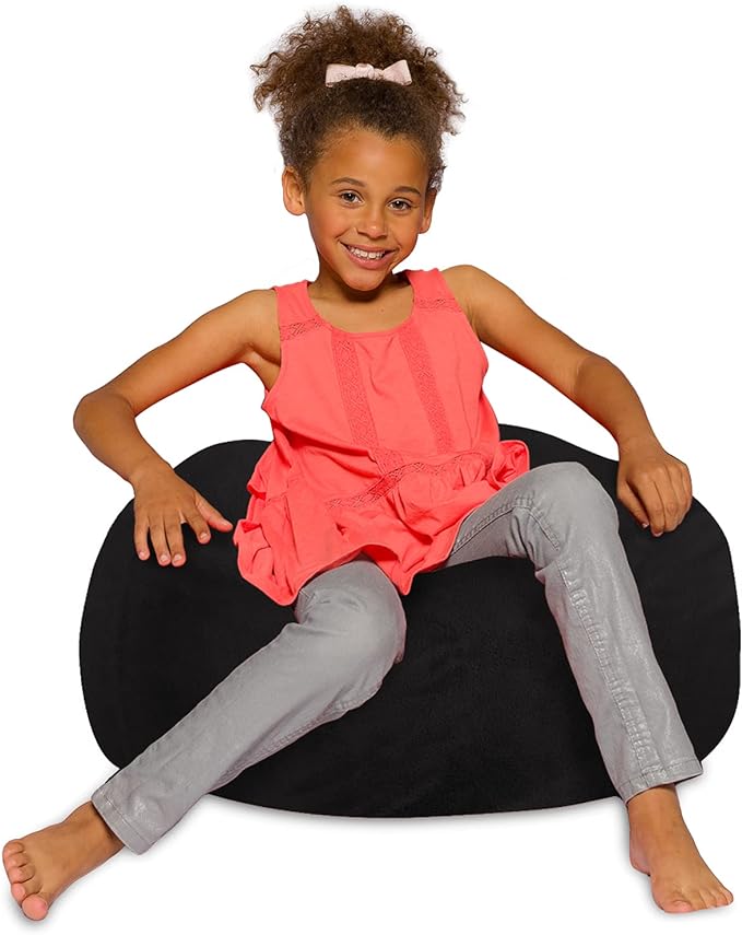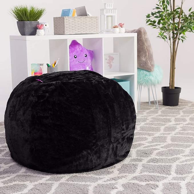 Posh Creations Bean Bag Chair for Kids, Teens, and Adults Includes Removable and Machine Washable Cover, Soft Faux Rabbit Fur - Black, 27in - Medium
