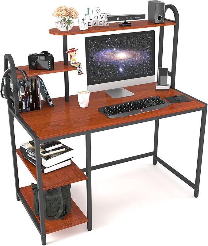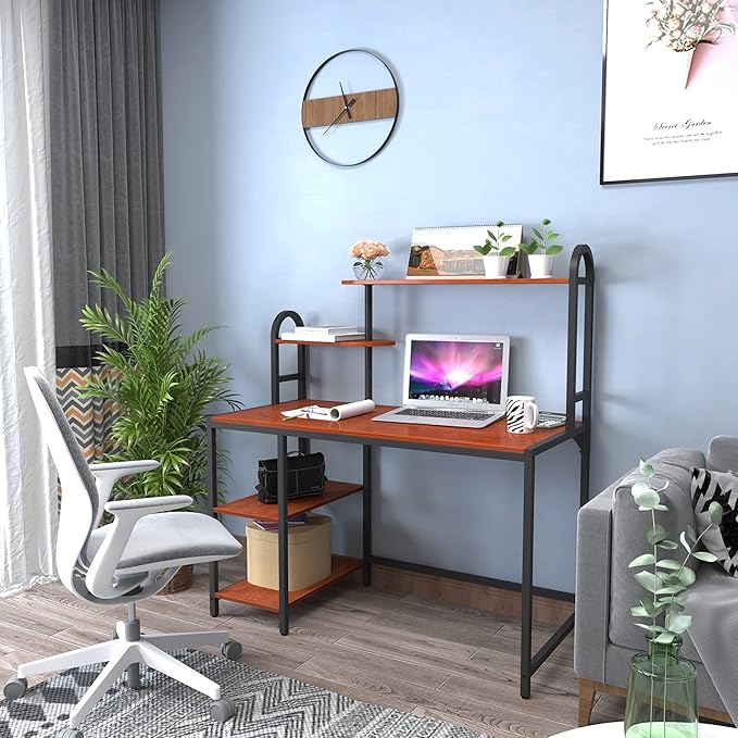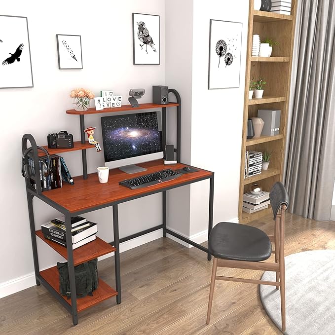Anivia Computer Desk with Hutch and Shelves, 47'' Home Office Desk with Adjustable Bookshelves, Writing Desk PC Study Table Workstation for Small Spaces