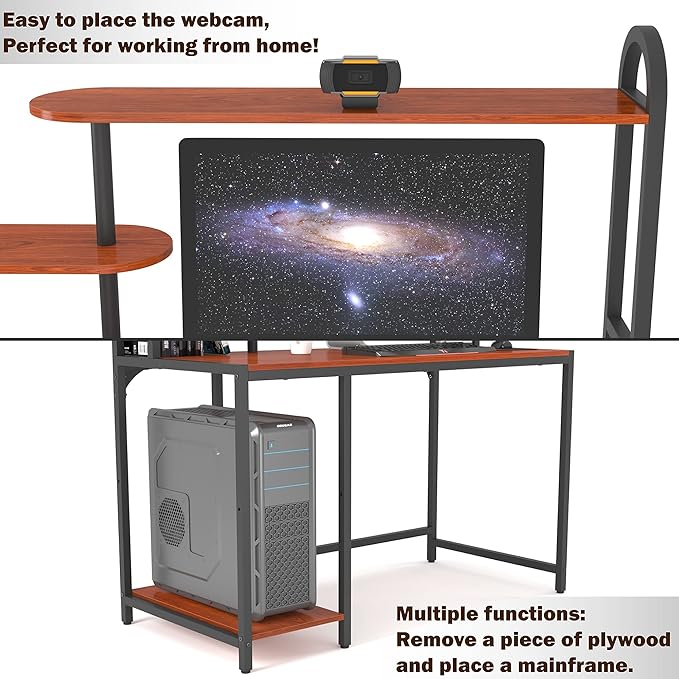 About This 【2 In 1 Desk with Shelves Design】Adding open and removable shelves on a desk, this design not only...