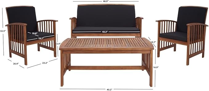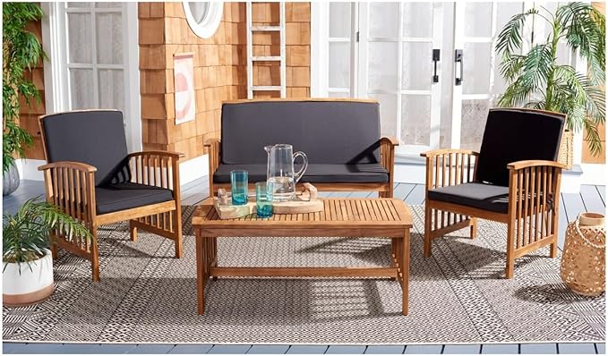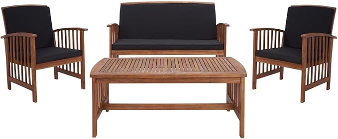 SAFAVIEH Outdoor Collection Rocklin Natural/ Black Cushion 4-Piece Conversation Patio Set