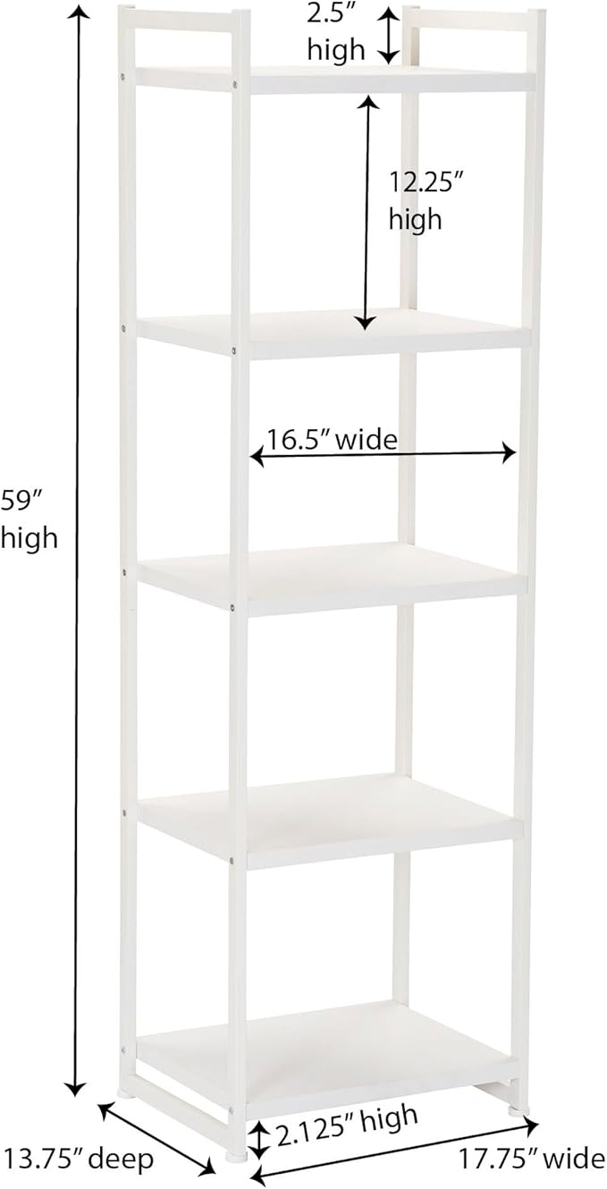 Household Essentials Jamestown Narrow 5 Shelf Open Storage Bookshelf Scandinavian White and White Metal