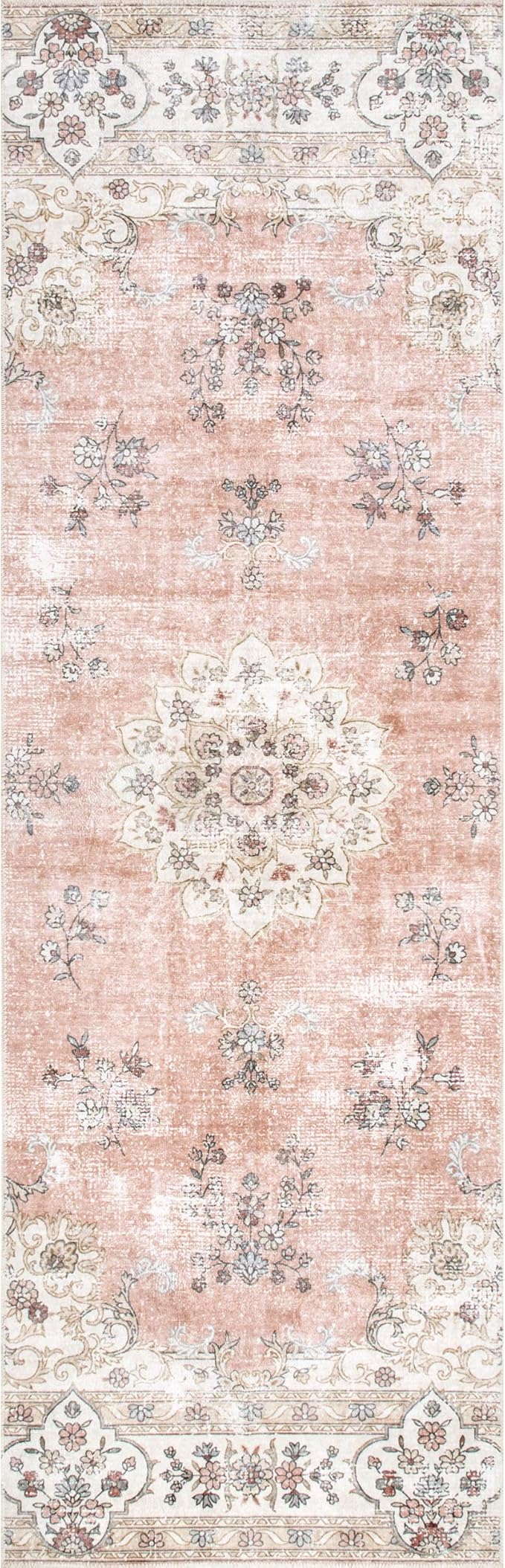 NuLOOM Ren Vintage Floral Machine Washable Ultra Thin Runner Rug, 2' 6" x 6', Peach