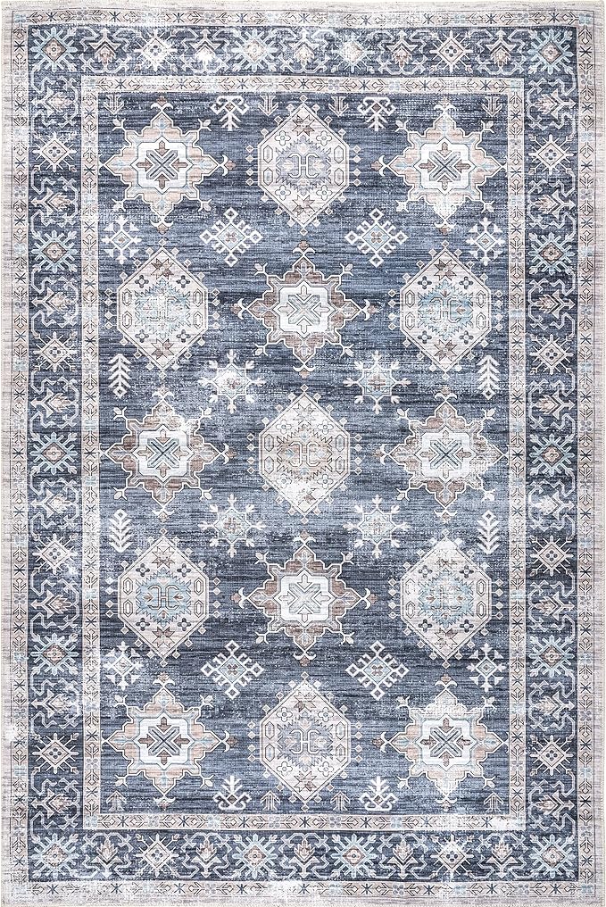 nuLOOM Finley Machine Washable Vintage Distressed Ultra Thin Area Rug, 3' x 5', Grey