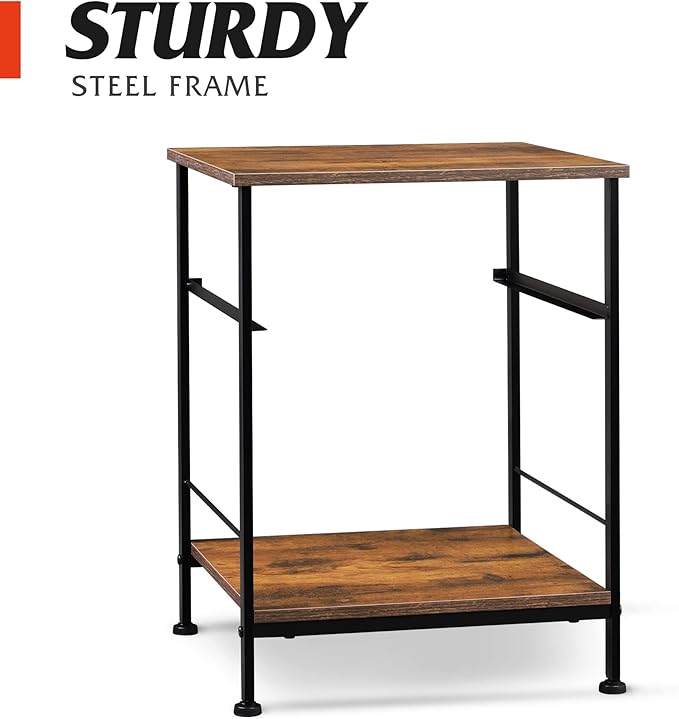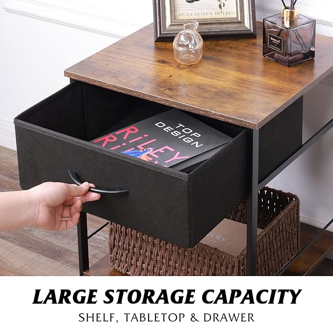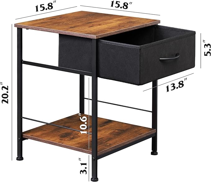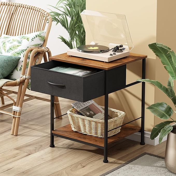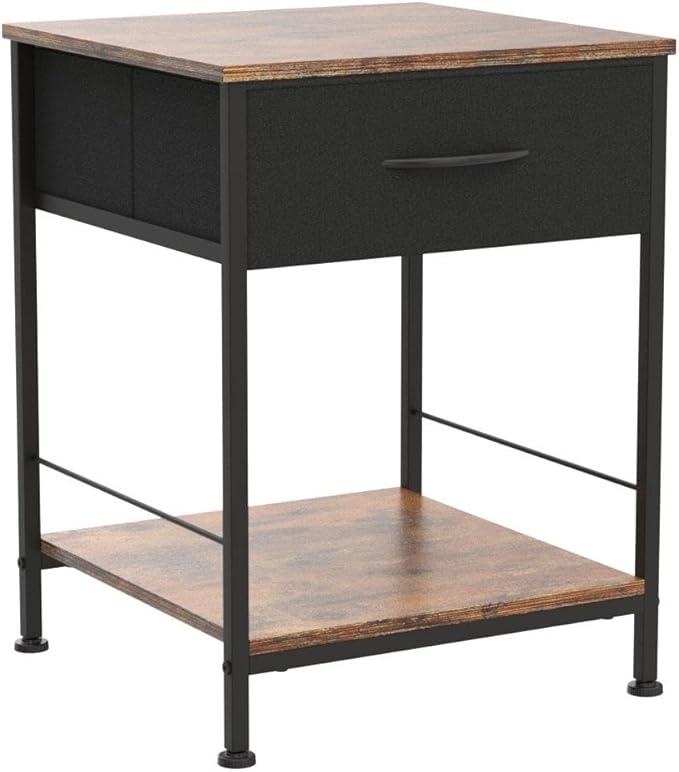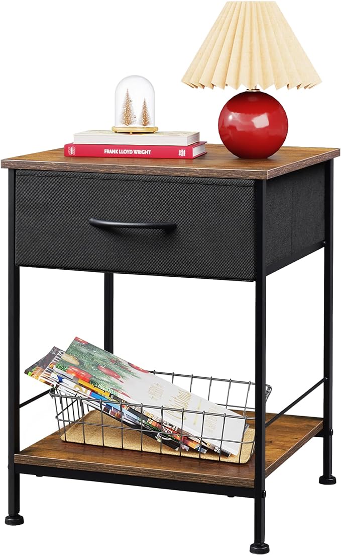 WLIVE Night Stand, Side Table with Fabric Storage Drawer, Small Nightstand, Bedside Table End Table for Bedroom, Dorm, Open Wood Shelf, Steel Frame, Black and Rustic Brown