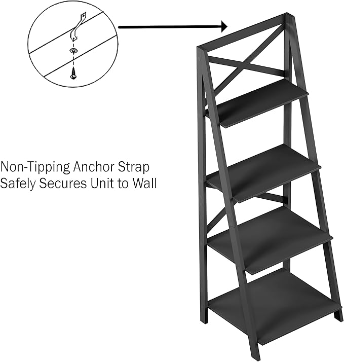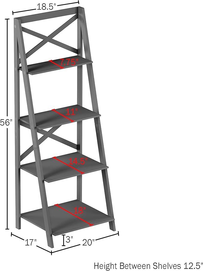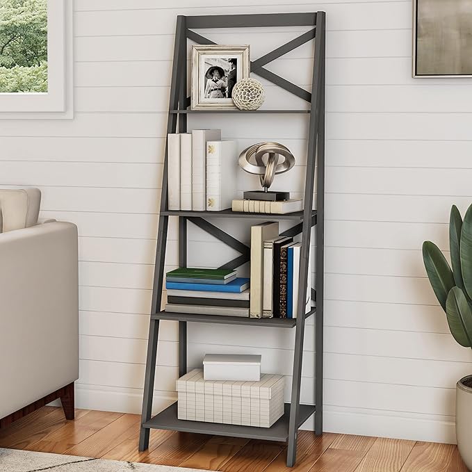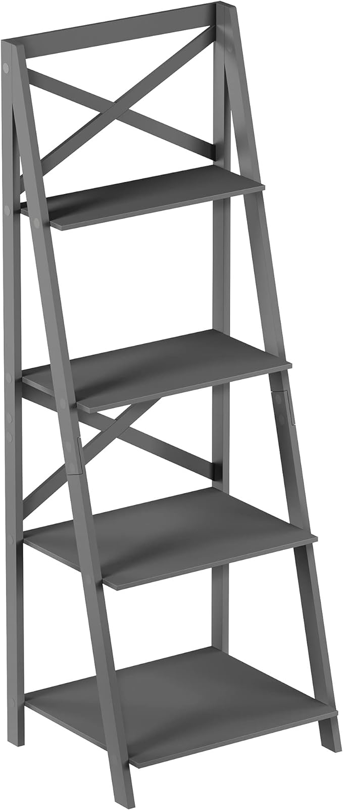 Lavish Home 4-Tier Ladder Bookshelf - Freestanding Shelved Bookcase with X-Back Frame and Leaning Look - Display Shelves for Home and Office (Gray)
