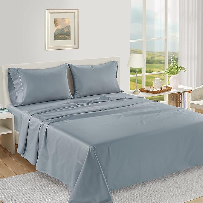 LANE LINEN 100% Egyptian Cotton Queen Sheet Set (4 Pc) - 1000 Thread Count - Sateen Weave – Luxury Hotel Bedding – Ultra Soft Queen Size Sheets Set – Bed Sheets with 16” Deep Pocket – French Blue