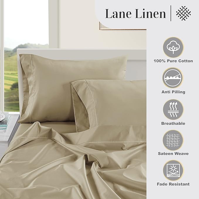 LANE LINEN 100% Egyptian Cotton Bed Sheets - 1000 Thread Count 4-Piece Linen King Set Bedding Sateen Weave Luxury Hotel 16" Deep Pocket (Fits Upto 17" Mattress)