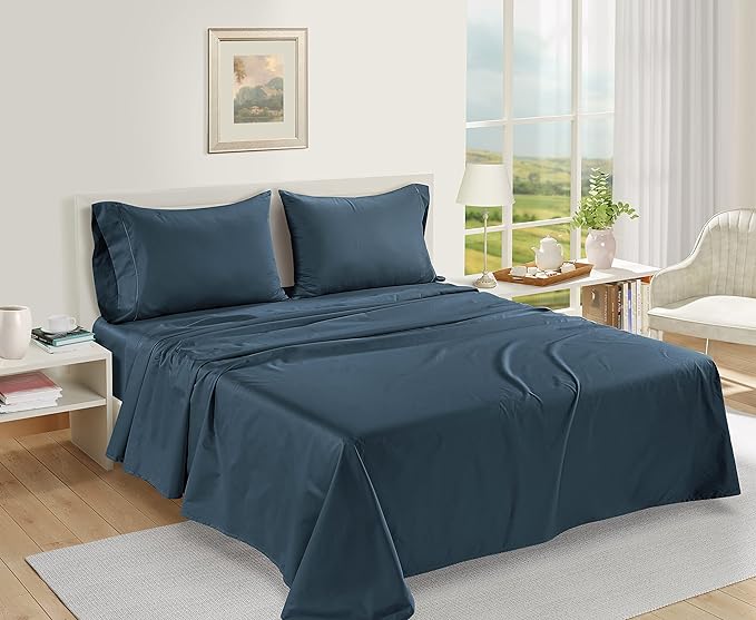LANE LINEN 100% Egyptian Cotton Queen Sheet Set (4 Pc) - 1000 Thread Count - Sateen Weave – Luxury Hotel Bedding – Ultra Soft Queen Size Sheets Set – Bed Sheets with 16” Deep Pocket – Denim