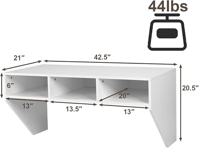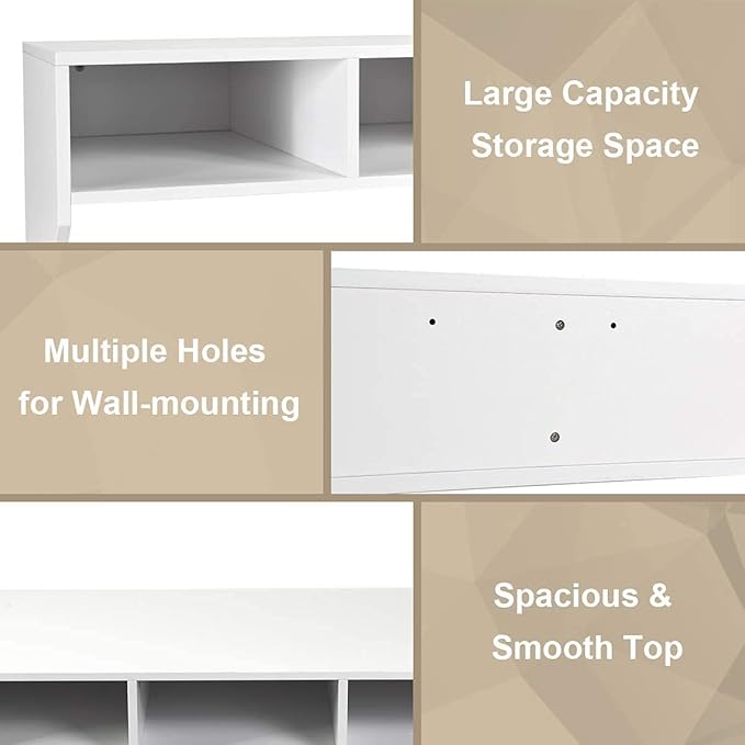 Computer Floating, Home Office Working, 42.5” Laptop Table Writing w/Storage Shelves, Modern Console Media Cabinet Wall Mounted Desk Hutch, White