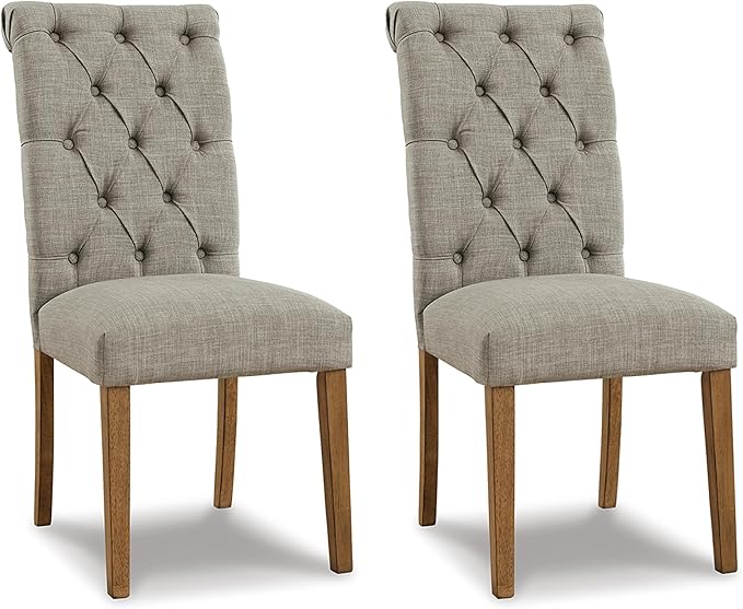 Signature Design by Ashley Harvina French Country Tufted Upholstered Dining Chair, 2 Count, Light Gray