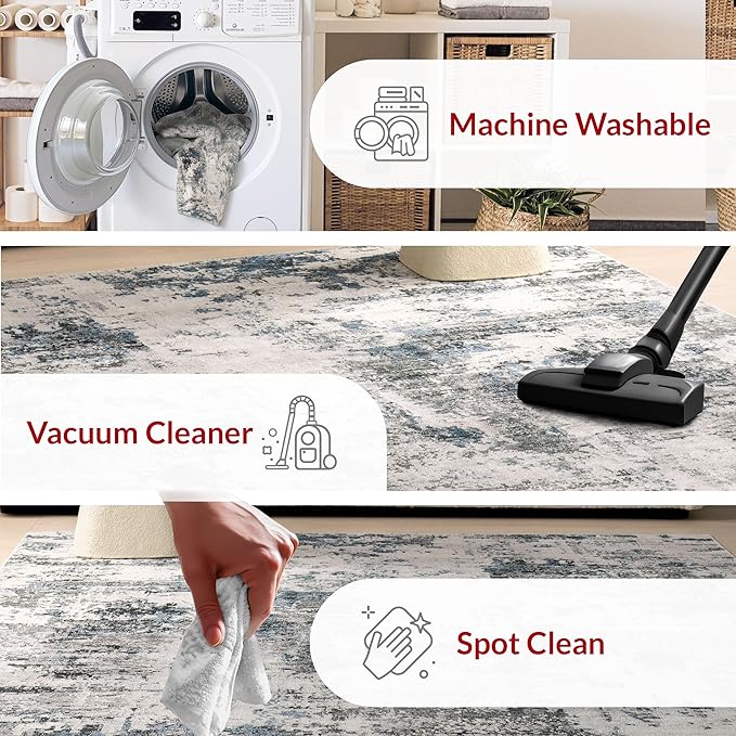 About This Stain-Resistant Material: Our machine washable rug is crafted from 100% Polyester that is stain-resistant, lightweight, and easy to...