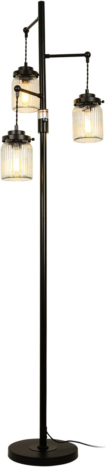 Industrial Farmhouse Rustic Lamp with 3 Glass Shades, Tall Standing Lamps with Dimmable Switch, Sturdy Base, Black Floor Lamps for Living Room Bedroom Office Home