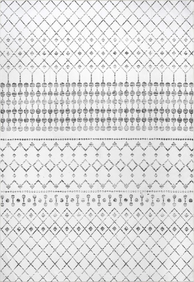 nuLOOM Moroccan Blythe Machine Washable Ultra Thin Area Rug, 8x10, Grey