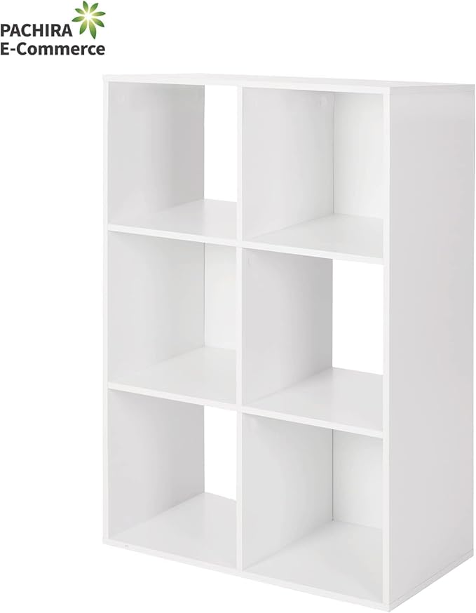 PATHIRA US Wooden Storage Bookcase 6-Cube, Fits 11 Inch Storage Bin, Modular Bookshelf Square Cabinet Organizer, Display Cube Shelves Compartments, White
