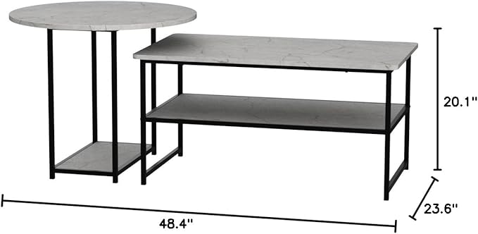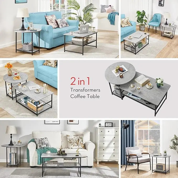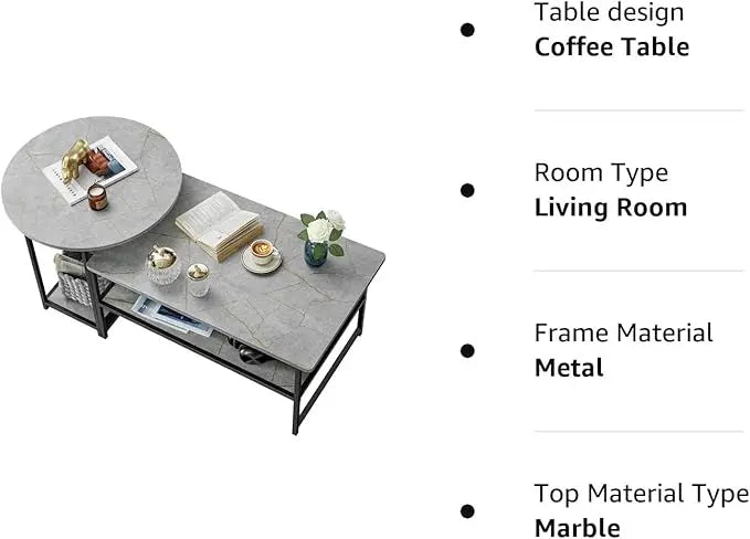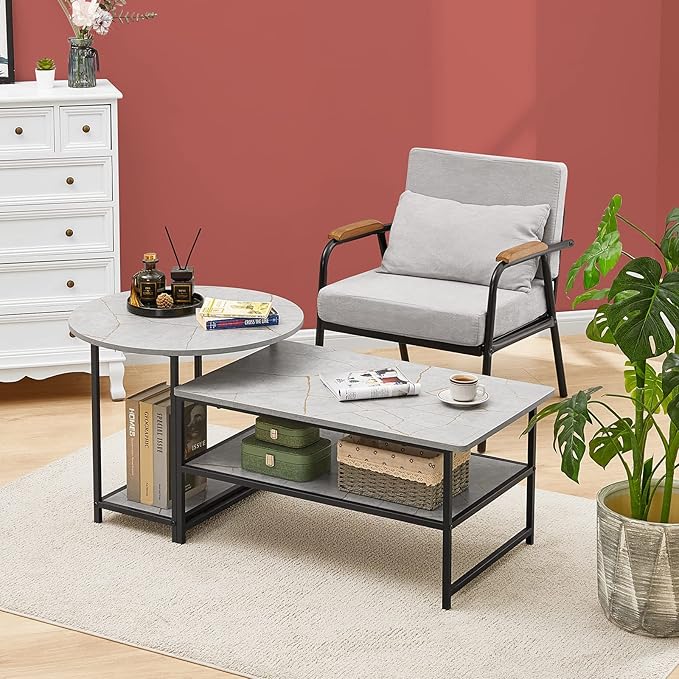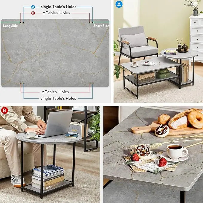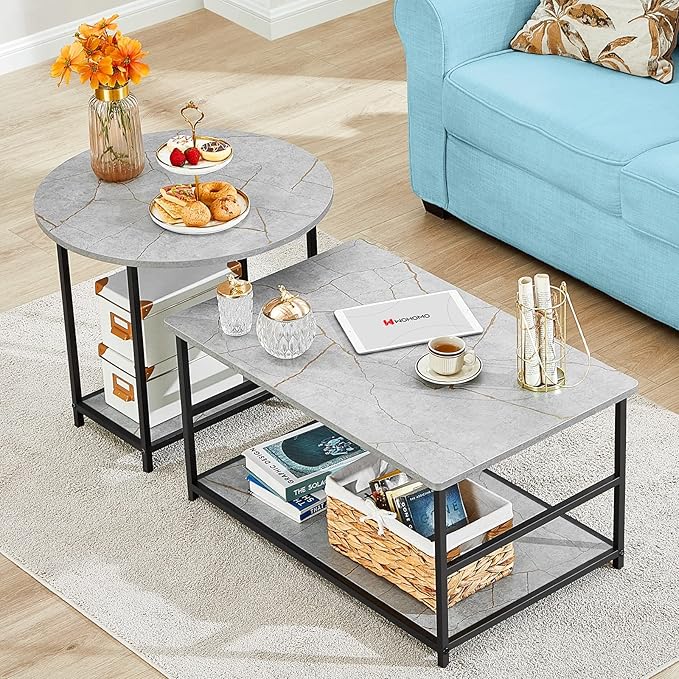 WOHOMO Coffee Table, Modern Style Coffee Tables for Living Room Marble Center Table with Storage 2 in 1Detachable Table Set,Grey Marble