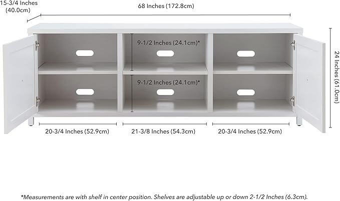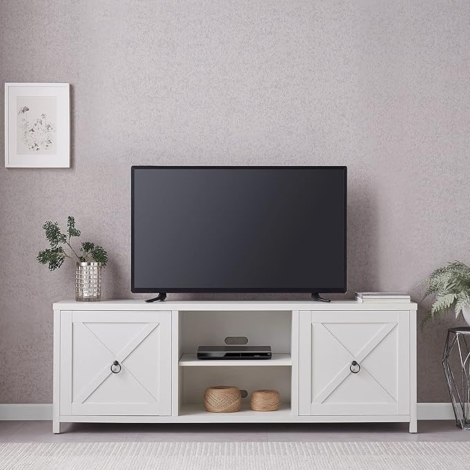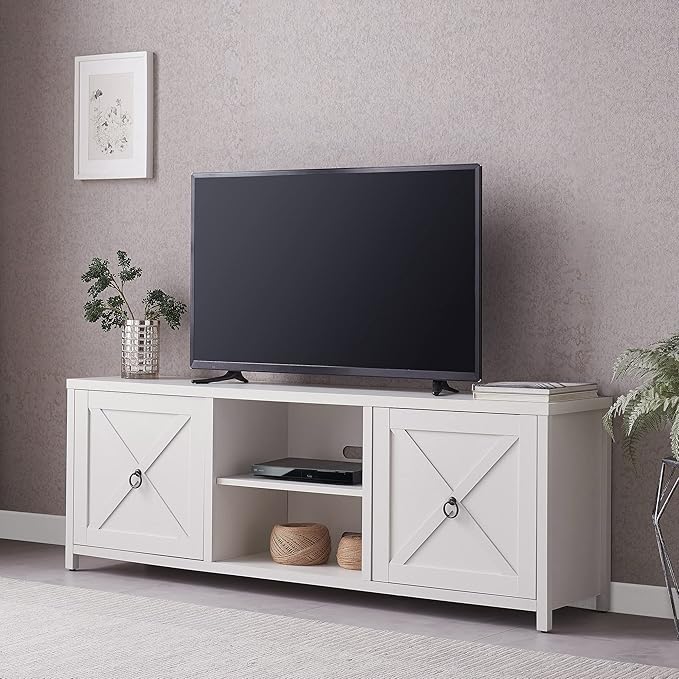 Henn&Hart Rectangular TV Stand for TV's up to 80" in White, TV Stands for the Living Room