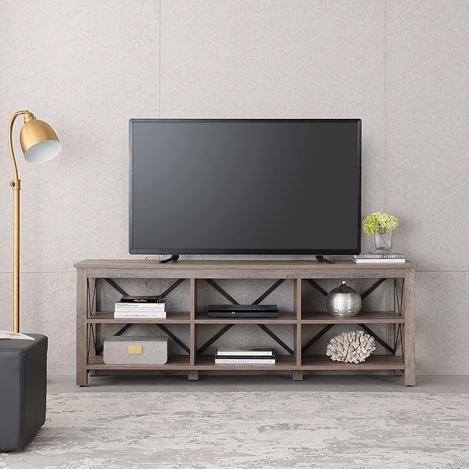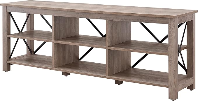 Henn&Hart Rectangular TV Stand for TV's up to 80" in Gray Oak, Electric Fireplace TV Stands for the Living Room