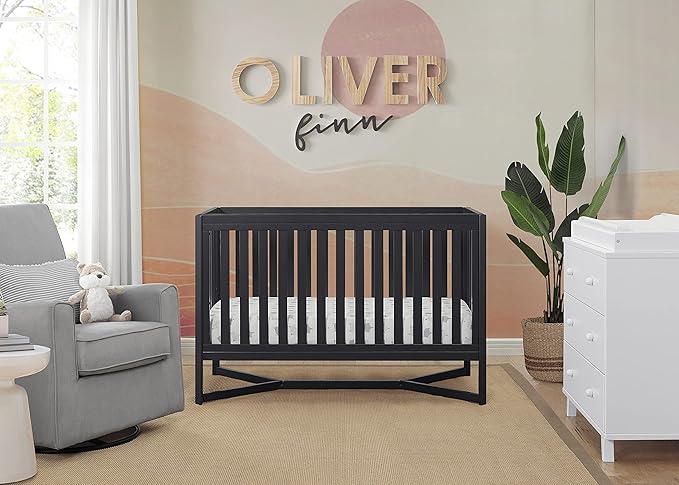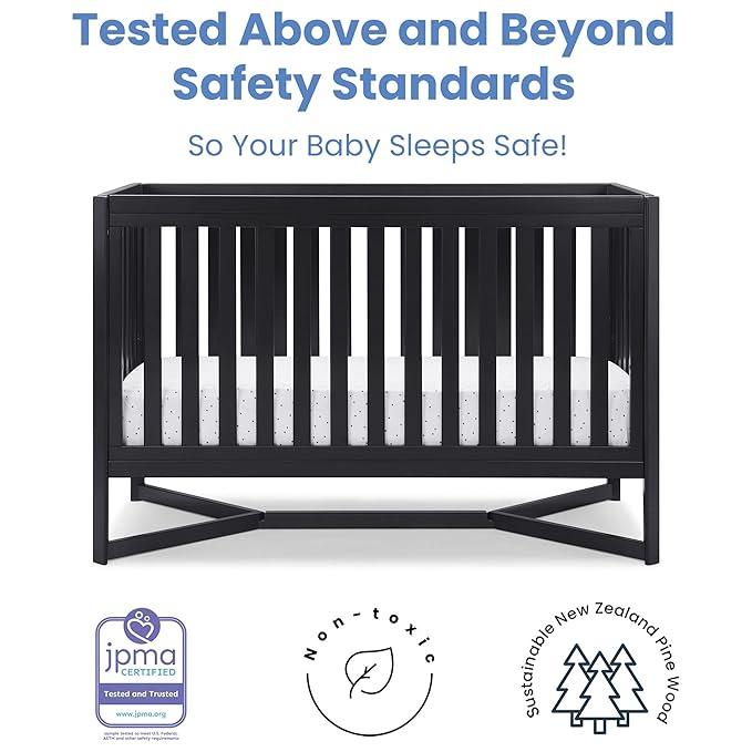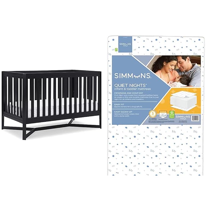 Delta Children Tribeca 4-in-1 Baby Convertible Crib + Simmons Kids Quiet Nights Crib and Toddler Mattress Made from Recycled Water Bottles/GREENGUARD Gold Certified [Bundle], Midnight Grey