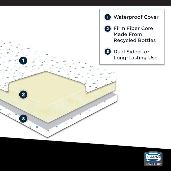 Delta Children Tribeca 4-in-1 Baby Convertible Crib + Simmons Kids Quiet Nights Crib and Toddler Mattress Made from Recycled Water Bottles/GREENGUARD Gold Certified [Bundle], Bianca White/Natural