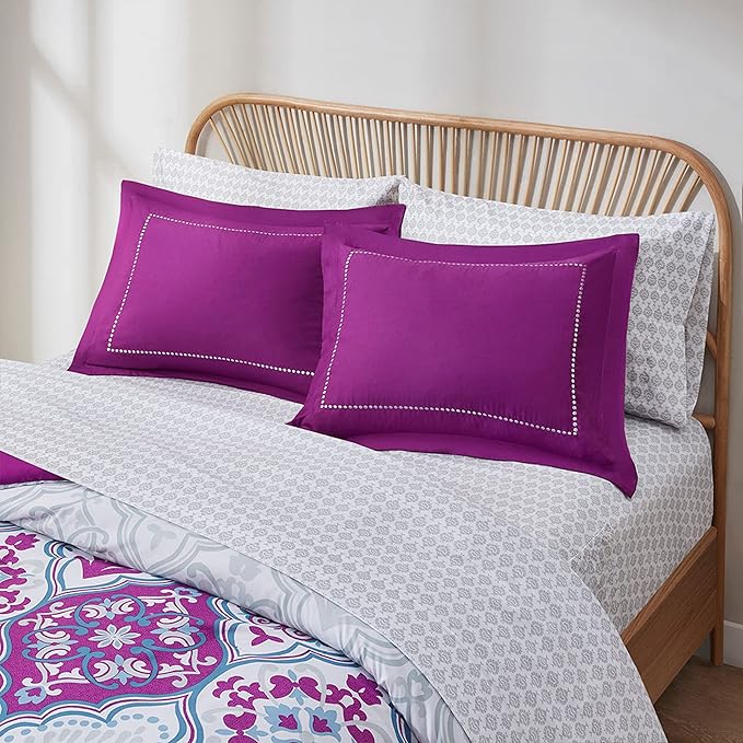 Degrees of Comfort Purple Comforter Set,Queen Boho Bedding Sets with Sheets,Bohemian Microfibe Bed in A Bag with Side Pockets, Matching Decorative Pillow, 8 Piece