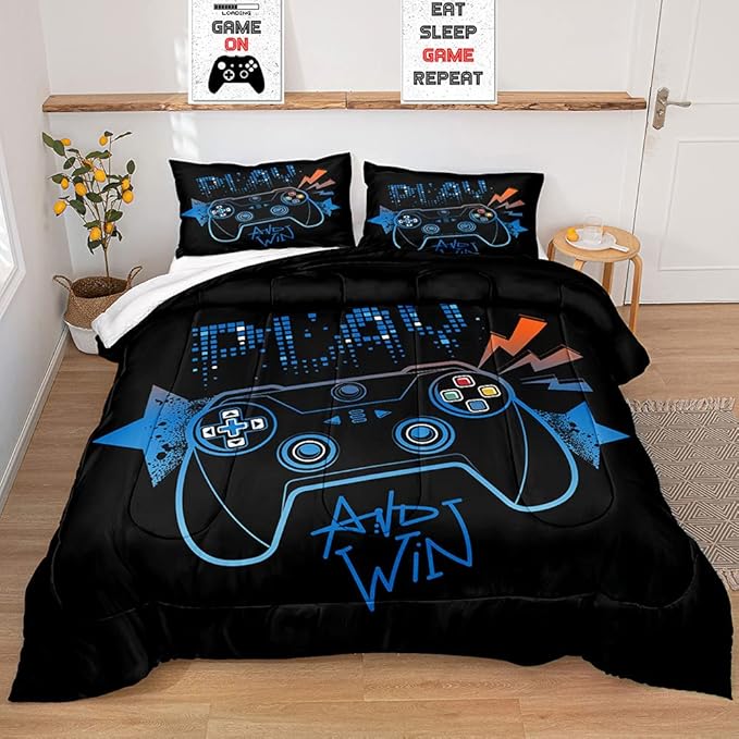 Gaming Comforter for Boys Teen,Game Contoller Bedding Set for Boys Kids,Down Alternative Comforter for All Season,Gamer Home Decor for Boys Comforter Set (Comforter-Game21, Queen)